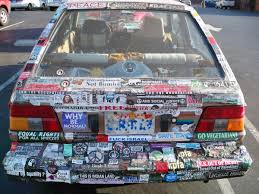 While driving south on I-15, a typical light blue minivan pulled into the lane just ahead of me. There was nothing wrong with this, apart from the very minute frustration that I was being passed by a car that has less zest than a dried oatmeal. I would have been mad, but the patience of a kind mother helped me let it go. I did however notice a small red rectangle on bumper of this less than robust car. Ah Ha! By reading this bumper-sticker I can not only learn the life history of this person, but know enough to prove my preconceived verdict that this person is below me in virtually every conceivable way (especially in automobile choice (ps I drive a dark blue Toyota Corolla- let that add to the humor)). I started to speed ahead and found the words much smaller than was readable at a safe distance. Obviously, my one-way war of egos against this person is more crucial than the few hours I spent awake at drivers education classes. I continued to get closer. This was a byproduct I did enjoy, intimidating the minivan driver by tailgating. As soon as I reached the threshold of insanity (being about 2 feet, I noticed it said Chiefs. Wow, not only is there nothing pithy or funny I can make fun of them with, but they are a lot less... uncool? than their minivan permits. I guess my thunder was extinguished because I know nothing about professional football. So I guess my words of advice for today are; if you are going to have a bumper sticker please make it something mockable. Examples of this include references to Veganism, politics from 8+ years ago, or your pride in your honor student. And please if you are going to place the bumper sticker in a visible place, make sure that the lettering is large, so that judgmental people, like myself, aren't put into danger. Thank You